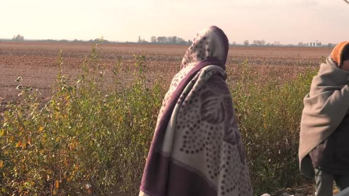 14.14 - Migranti su krenuli preko njive da zaobiđu policiju kako bi ušli u Hrvatsku.