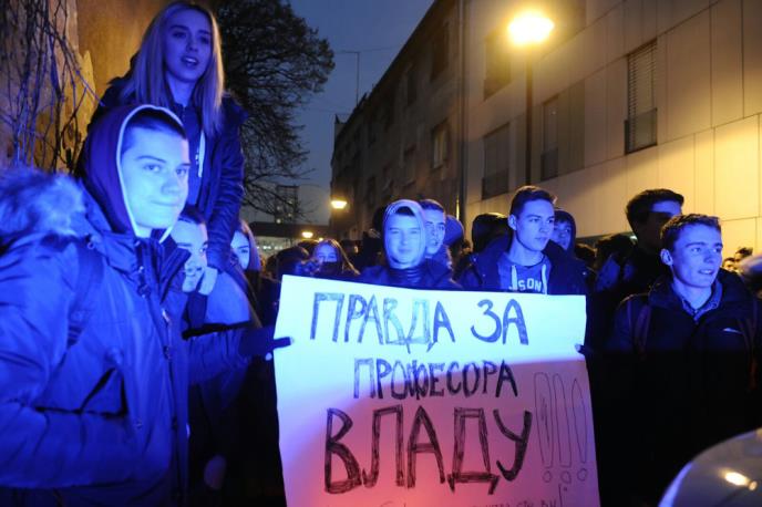 Učenici Četrnaeste beogradske gimnazije izašli su na ulice i prekinuli nastavu jer je otkaz dobio njihov omiljeni profesor srpskog jezika i književnosti Vlada Milojević.