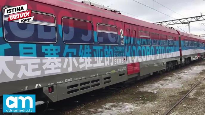 Voz je spolja oslikan u bojama srpske zastave, a na jednom mestu, među drugim svetskim jezicima, i na albanskom piše: Kosova eshte Serb - Kosovo je Srbija!