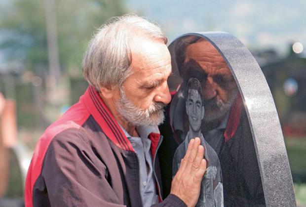 „Onaj tamo je poginuo... I onaj... Ovaj se ubio... I tamo dvojica poginula“, pokazuje mi grobove mladića stradalih 1999. godine na Kosovu. Drugu ruku prisno je, očinski, položio na crni spomenik svog sina Aleksandra 1979-1999.
