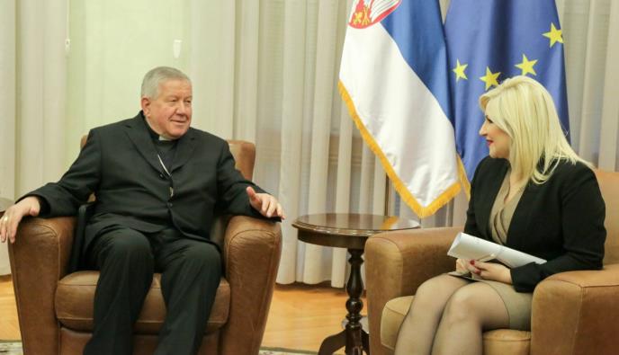 U saopštenju ministarstva navodi se da su Mihajlovićeva i Hočevar razgovarali o dinamici vraćanja imovine beogradskoj nadbiskupiji kroz proces restitucije, kao i o projektima nadbiskupije.