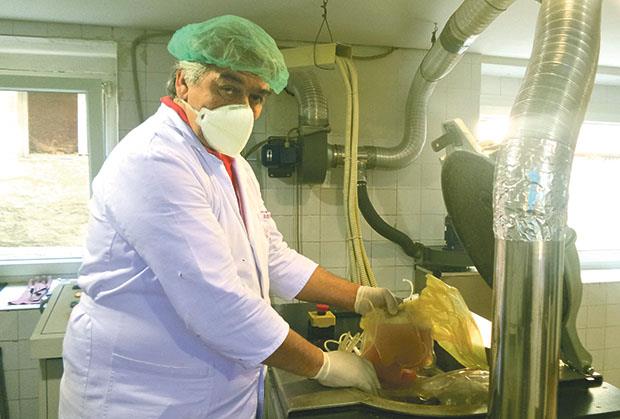 - Uništavanje krvne plazme radi se u posebnom uređaju koji služi za obradu medicinskog otpada. Taj uređaj je jedinstven u Srbiji i obrađuje i čvrst i tečan medicinski otpad. Na dnu ima dva noža, a sa strane četiri i usitnjava sve delove, bilo da je kesa sa ostacima krvi, plazma, neutrošena krv, ili pak oštri predmeti, zavoji, posteljina... - objašnjava Biljana Martinović, načelnica Odeljenja za poslove bezbednosti zdravlja na radu, ekologije i higijene.