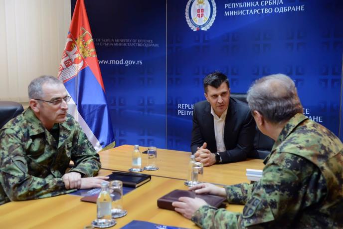 Direktor Inspektorata odbrane general-major dr Goran Radovanović i predsednik komisije brigadni general Mile Jelić detaljno su upoznali ministra odbrane sa sadržajima izveštaja.