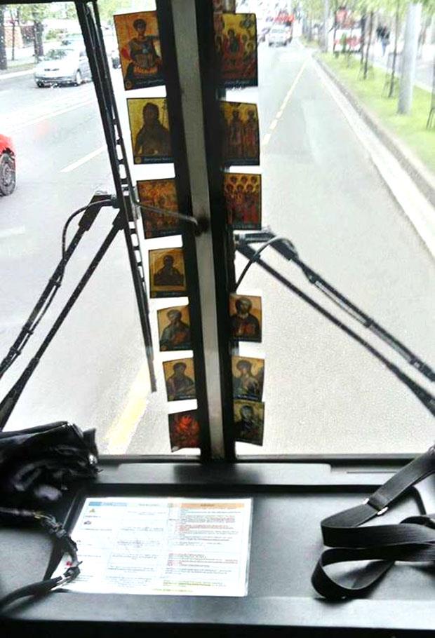 On je, naime, sačuvao ikone koje Kurir svakodnevno poklanja i okačio ih sa unutrašnje strane šoferšajbne autobusa na liniji 37, što je privuklo pažnju svih putnika.