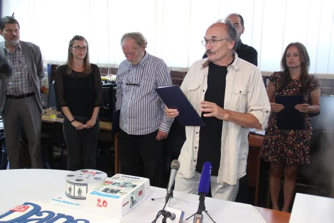 Rođendanska torta za 20-godišnjicu Danasa. I tradicoionalna dodela nagrada. Dobitnik nagrade "Stanislav Staša Marinković" ove godine je karikaturista Dušan Petričić.