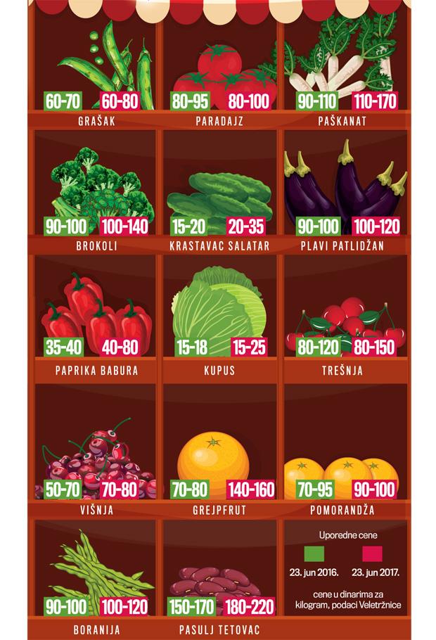 S ovim smanjenim zaradama građani odlaze na zelenu pijacu, na kojoj su pojedine vrste voća i povrća poskupele i do 40 dinara po kilogramu, dok u ostalim radnjama skuplje plaćaju i sveže meso, ribu, delikates, sokove i alkoholna pića, kafu, slatkiše.
