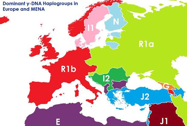 Mapa koju vidite pokazuje kako bi granice izgledale da su iscrtane na osnovu DNK, odnosno dominatne Y-DNK haplogrupe (umesto po nacionalnom ključu), piše www.espreso.co.rs.
