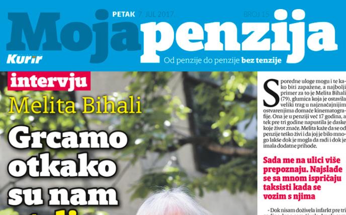 U ovom broju poklon dodatka Moja penzija pročitajte ekskluzivni intervju sa glumicom koja je igrajući sporedne uloge ostavila veliki trag u najznačajnijim ostvarenjima domaće kinematografije, Melitom Bihali. Ona je samo za Moju penziju otvorila dušu i ispričala o teškom položaju penzionera.