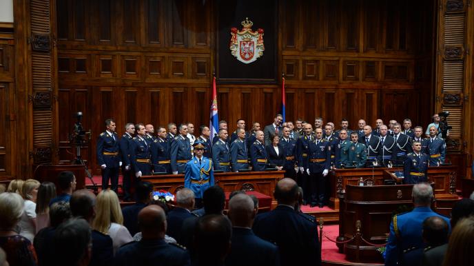 Predsednik Republike Aleksandar Vučić uručio je danas oficirske sablje najboljim oficirima u 60. klasi Generalštabnog usavršavanja Škole nacionalne odbrane, potpukovnicima Staniši Đikiću, Ivici Stankoviću i Predragu Jovičiću.