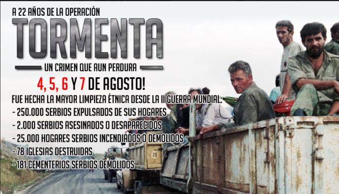 "Pre 22 godine, 4. avgusta 1995, desilo se najveće etničko čišćenje u Evropi posle drugog svetskog rata. Počinili su ga Hrvati nas sroskim civilima, koji su morali da napuste svoje domove i nikad se ne vrate.