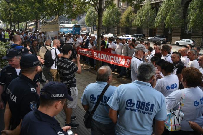 BEOGRAD - U centru Beograda, tačno u 10 časova, počeo je protest 180 radnika fabrike šinskih vozila „Goša“ iz Smederevske Palanke. Radnici protestuju ispred zgrade Vlade Srbije, u Nemanjinoj 11.
