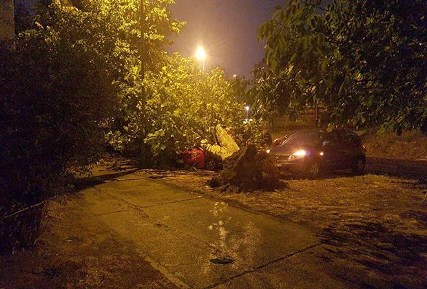 Na Novom Beogradu jak vetar je čak počeo da lomi grane drveća koje su popadale po parkiranim automobilima, a zabeleženi su slučajevi i obaranja saobraćajne i građevinske signalizacije. U ulici Dušana Vukasović je polomljeno drvo uništilo automobil.