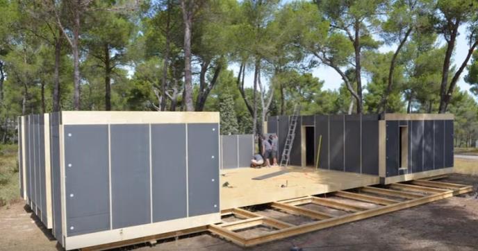 Kuće se brzo grade, jer se zidovi seku po zadatim merama još u fabrici, a na licu mesta se sklapaju drvenim gredama ili čeličnim konstrukcijama.