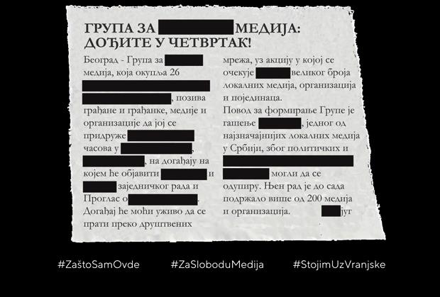 U trenutku kada je sloboda medija u Srbiji ugrožena i kada se kažnjava svaki pokušaj da se nepristrasno govori o problemima u ekonomiji, društvu, politici, kada se seče svaka reč napisana na račun sveprisutne korupcije u izvršnoj vlasti, od neprocenjive je važnosti da svi daju svoj doprinos borbi za slobodne medije.