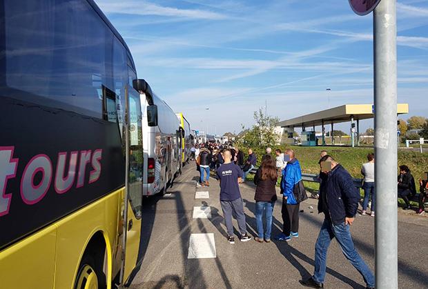 Nešto veća kolona autobusa danas popodne je viđena ka izlazu iz Srbije, međutim Granična policija je za nekoliko sati uspela da propusti veliki broj vozila i nastoji da gužve svede na minimum.