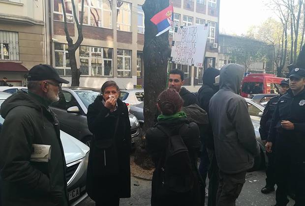 Na ovoj adresi, iako je iseljenje bilo zakazano za 10 časova, ranije su počeli da se okupljaju građani sa transparentima.