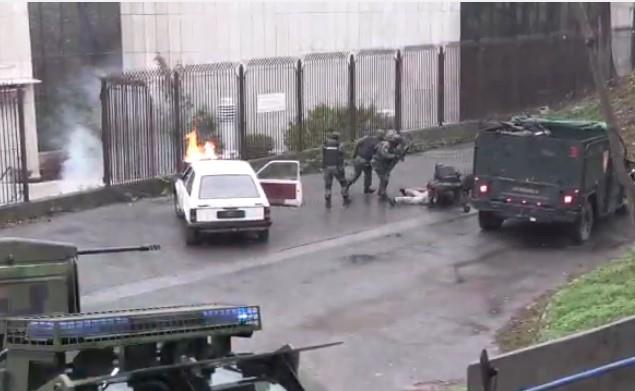 12.13 - Pripadnici Specijalne antiterorističke jedinice munjevito su savladali teroriste, posle čega je na mesto pucnjave odmah došla Hitna pomoć koja je zbrinula ranjene.