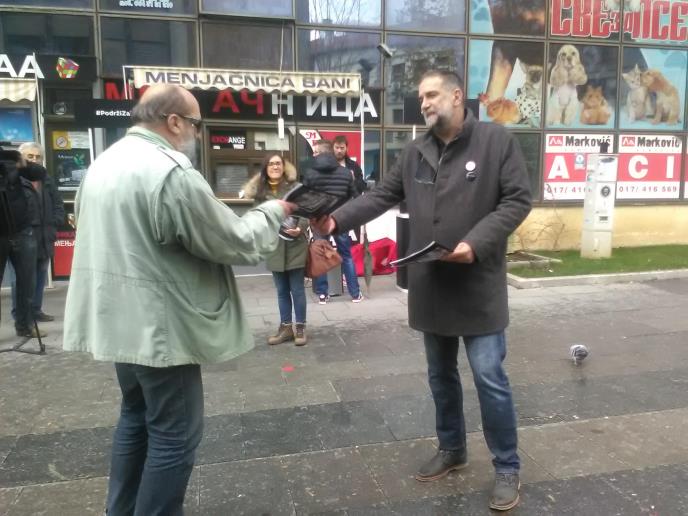 VRANJE- Pod nazivom „Bukom protiv mraka“ u Vranju je u nedelju u centru grada neformalna grupa Za slobodu medija, nastala iz pokreta Stojim uz Vranjske, posle razgovora sa premijerkom Anom Brnabić, organizovala razgovore sa građanima kako bi im predstavila 13 zahteva koji su predati Vladi Srbije.