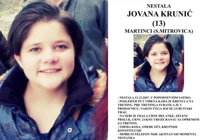 Podsetimo, trinaestogodišnja Jovana Krunić iz Martinaca kod Sremske Mitrovice nestala je u utorak, 12. decembra.