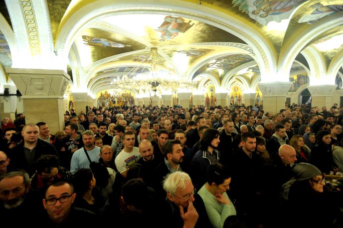 (KURIR TV) Nekoliko stotina ljudi ispred Hrama Svetog Save čeka lomljenje božićne česnice
