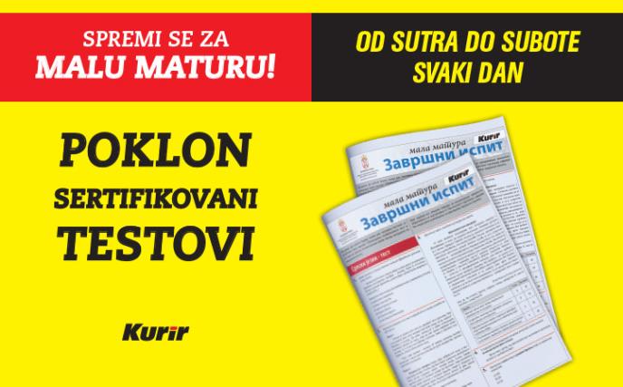 Od sutra svaki dan, dnevne novine Kurir u saradnji sa Zavodom za vrednovanje kvaliteta obrazovanja i vaspitanja i Prosvetnim pregledom, poklanjaju sertifikovane testove za polaganje male mature. Svakoga dana u Kuriru vas čeka po jedan test: kombinovani test, test iz srpskog jezika i iz matematike i to baš onakvi kakvi vas čekaju na završnom ispitu.