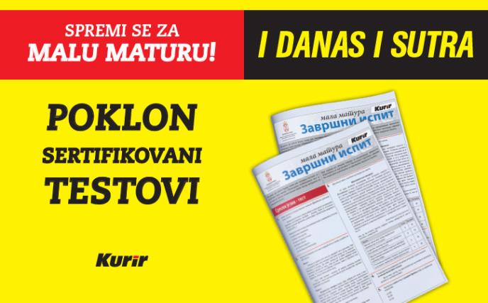 Najuticajnije dnevne novine na Balkanu – Kurir, u saradnji sa Zavodom za vrednovanje kvaliteta obrazovanja i vaspitanja i Prosvetnim pregledom, i danas i sutra poklanjaju sertifikovane testove za proveru znanja za polaganje male mature.