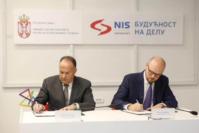 Kompanija NIS i Ministarstvo prosvete, nauke i tehnološkog razvoja potpisali su danas Memorandum o saradnji kojim je predviđeno zajedničko delovanje u oblasti nauke i obrazovanja. Sporazum su potpisali Mladen Šarčević, ministar prosvete, nauke i tehnološkog razvoja i Kiril Tjurdenjev, generalni direktor NIS-a.