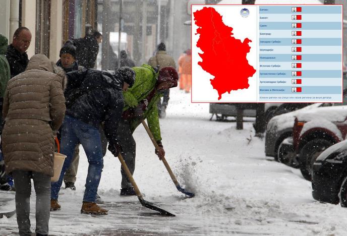 Već od sutra, kao i u petak i subotu, na snazi će, u većim delovima zemlje, biti crveni meteoalarm jer će prema prognozama meteorologa biti izuzetno hladno, a biće i kiše koja će lediti pri tlu.