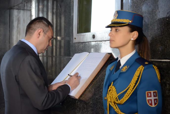 "Ustanički narod Srbije, zajedno sa ustaničkom vojskom, pokazao je da su narod i vojska jedno, da su se kroz istoriju izborili za najveću vrednost, a to je sloboda. Državotvornost, integritet i suverenitet države i vojske, stekli smo zahvaljujući našim hrabrim precima, našim junacima i herojima. Ostaje nam da još više čuvamo ono što su nam u amanet ostavili naši preci i ne dozvolimo da bilo ko razjedini naš narod i vojsku. Ujedinjeni možemo u budućnost, ujedinjeni možemo sačuvati slobodu, našu vojsku i suverenitet i integritet Srbije", upisao je Vulin u spomen-knjigu.