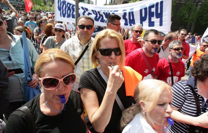 "Ako usvoje da platni razredi budu onakvi kakve su ih oni sada zamislili, očekujte od 1. januara naredne godine manje plate", rekla je Janković na protestu.