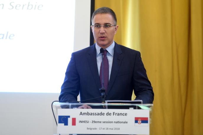 "U godini kada slavimo jubilej 100 godina od završetka Velikog rata i savezništa u tom ratu u kojem su Srbija i Francuska iskovale neraskidivo prijateljstvo treba da podsetimo da su naši dobri odnosi dokazani u ratovima koji su vođeni, ali i time što danas zajedno čuvamo mir u Evropi", naveo je ministar unutrašnjih poslova.