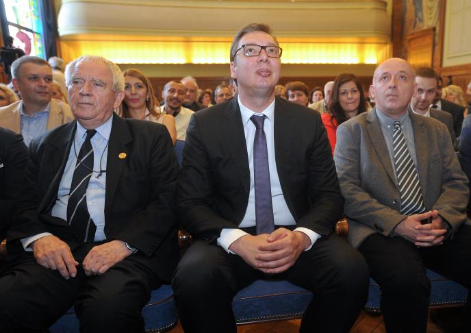 Predsednik Aleksandar Vučić prisustvovao je u Srpskoj akademiji nauka i umetnosti otvaranju dvodnevne međunarodne konferencije antikorupcijskog portala "Pištaljka", u društvu premijerke Ane Brnabić, šefa delegacije EU u Srbiji Sema Fabricija i zaštitnika građana Zorana Pašalića.