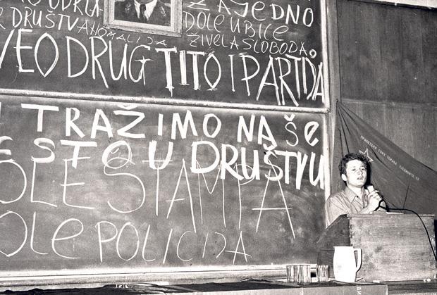 U zgradi Rektorata smenjivali su se govornici. Teme su bile: sloboda, nasilje, politika, istorija, problemi u društvu, korupcija... svako je govorio šta je hteo. Ali, studenti nisu dozvoljavali poimenične kritike funkcionera. Takve govornike prekidali su povicima: „Ua, provokator! Skidajte ga sa govornice!“