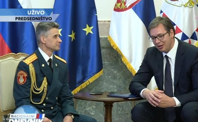 BEOGRAD - Predsednik Srbije Aleksandar Vučić sastao se sa članovima Akademskog ansambla pesama i igara ruske armije "Aleksandrov".