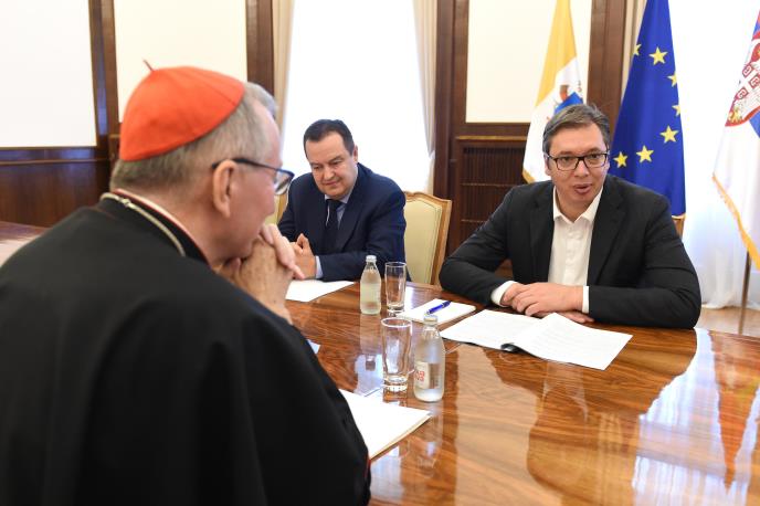 Predsednik Srbije Aleksandar Vučić sastao se danas u Beogradu sa državnim sekretarom Svete Stolice kardinalom Pjetrom Parolinom koji boravi prvi put u Srbiji.