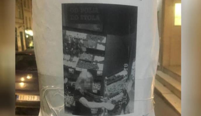 Pretpostavlja se da je neki besni vlasnik radnje otkrio ko mu krade robu, pa je sliku sa nadzorne kamere, na kojoj se vidi gospođa u srednjim godinama, postavio na banderu, sa sve brojem mobilnog telefona.
