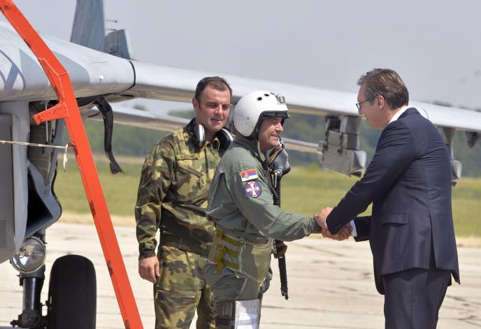 Predsednik Srbije je prethodno prisustvovao prijemu dva MIG-a 29, koji su modernizovani i u potpunosti pripremljeni za let. Remont ova dva aviona MIG-29 obavljen je u Srbiji.