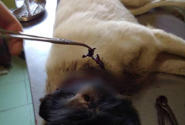 Tek kad su veterinari pokušali da uklone žicu, primetili su da je u mesu, duboko u vratu, urastao zarđali lanac, barem dva santimetra ispod kože. Lanac su odsekli motocanglama, i izvadili iz mesa, a tek onda rana je zašivena, i psu su dali lekove.