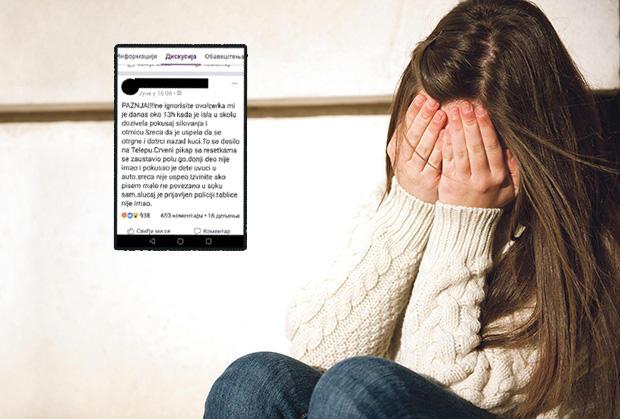 “Ćerka mi je juče oko 13 časova, kada je išla u školu doživela pokušaj silovanja i otmicu. Sreća da je uspela da se otrgne i dotrči nazad kući.To se desilo na Telepu. Crveni pikap sa rešetkama se zaustavio, polu go muškarac, donji deo nije imao, pokušao je dete uvuči u auto. Sreća nije uspeo. Slučaj je prijavljen policiji. Tablice nije imao”, stoji u objavljenom statusu na Fejsbuku.