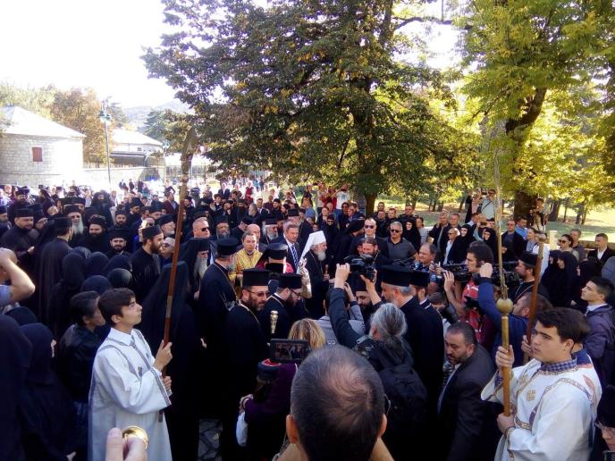 Patrijarsi su oko 11 sati stigli na Cetinje, gde su u Cetinjskom manastiru služili svečanu doksologiju, nakon koje je Mitropolit crnogorsko-primorski Amfilohije pozdravio goste. U pratnji patrijarha Irineja je mitropolit zagrebačko-ljubljanski Porfirije. U Podgoricu su doputovali i episkopi šumadijski Jovan i valjevski Milutin.