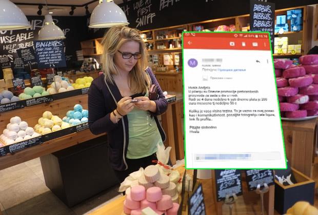 Kako bi pronašla posao, mlada Nišlijka je aplicirala za posao promoterke. Nakon urednog poslatog mejla, sačekao ju je odgovor poslodavca u kome je zatraženo da pošalje fotografije cele figure, podatke o visini, težini i slične.
