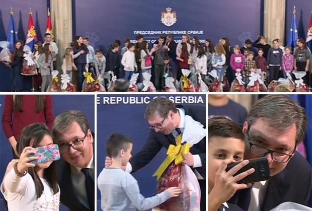 PLJUŠTALI SELFIJI U PREDSEDNIŠTVU: Vučić se slikao s klincima s Kosmeta, pa im podelio paketiće! (FOTO)