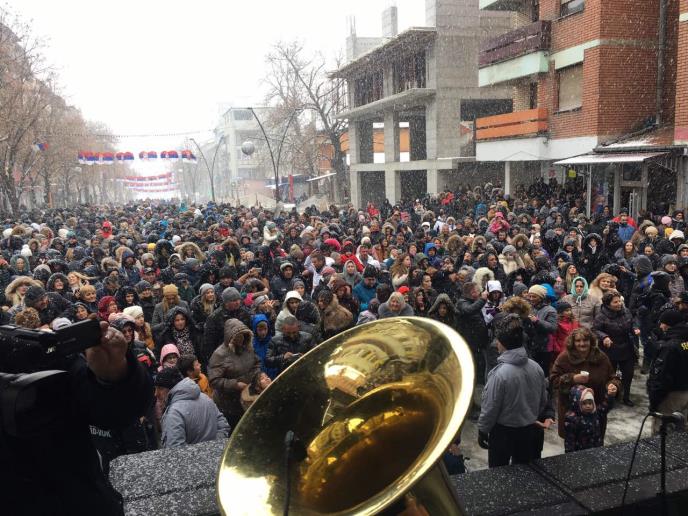 Uprkos hladnoći i snegu koji je provejavao, više od pet hiljada ljudi okupilo se na Badnji dan na trgu u Kosovskoj Mitrovici.