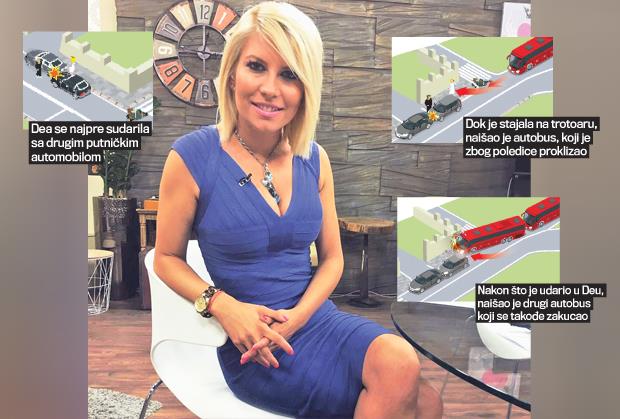 - Od siline udarca autobus je Dei, koja je u tom trenutku stajala na trotoaru, otkinuo ruku! Međutim, hrabra voditeljka je uspela da smogne snage i teško povređena sedne pored svog auta, gde je u svesnom stanju sačekala ekipu Hitne pomoći. Ali ni tu nije bio kraj. Nakon izvesnog vremena pojavio se i autobus na liniji 59 koji se zakucao u već slupani autobus - dodaje naš sagovornik.