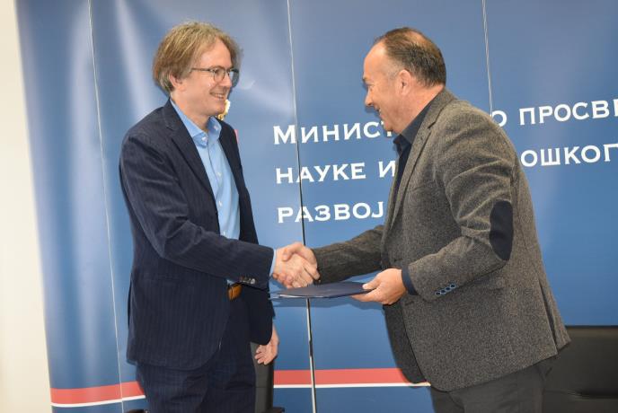 Ministar prosvete, nauke i tehnološkog razvoja Mladen Šarčević i direktor Inicijative „Digitalna Srbija“ Nebojša Đurđević potpisali su danas u Beogradu sporazum kojim je dogovorena saradnja kada je reč o realizaciji konkursa.