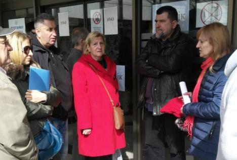 BAHATI ŠTRAJKAČ NE DA GRAĐANIMA DA UĐU U ZGRADU KATASTRA: Ometaju rad službe iako većina zaposlenih želi da radi! BRUKA! (FOTO)