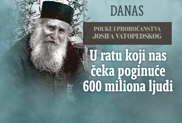 Otac Josif Vatopedski predvideo je da nas čeka rat u kome će poginuti 600 miliona ljudi, kako će Srbija posle velikih stradanja izaći kao pobednik i kakva će biti sudbina pravoslavlja, Vatikana i Amerike nakon apokalipse. Takođe ćete imati priliku da pročitate kako se dan posle smrti obratio prijateljici putem radija u njenim kolima i poslao joj važnu poruku.