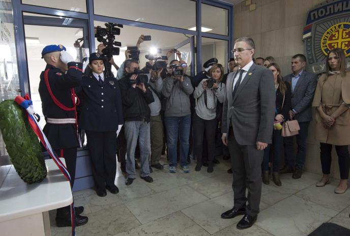 Ministar je u holu zgrade Policijske uprave u Nišu položio venac na spomen ploču poginulim policijskim službenicima tokom NATO bombardovanja, a pre toga rekao je novinarima da su pre 20 godina, za vreme NATO agresije na SRJ, pripadnici policije bili su jedan od ključnih oslonaca naše zemlje po pitanju bezbednosti.