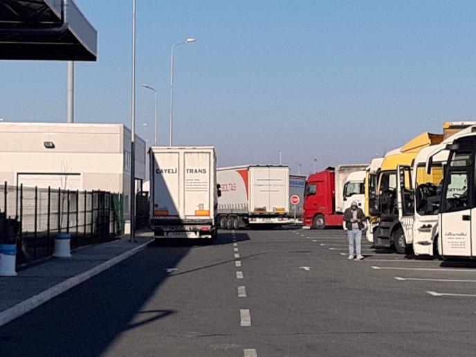 Mada je međuzona između dve države i dalje konstantno puna, situacija je jutros nešto bolja. Trenutno je kamionska kolona na ovom graničnom prelazu duga tri kilometra, ali na izlaz iz zemlje se i dalje čeka oko 12 sati, napominje se u saopštenju.