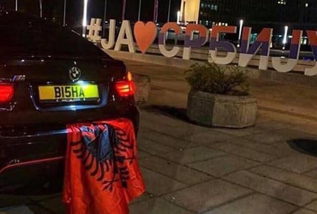 Nepoznati Albanac objavio je na društvenim mrežama fotografiju svog automobila ispred Palate Srbija iz kog je virila albanska zastava. Ovim je, verovatno hteo da isprovocira Srbe, i to usred srpske prestonice.